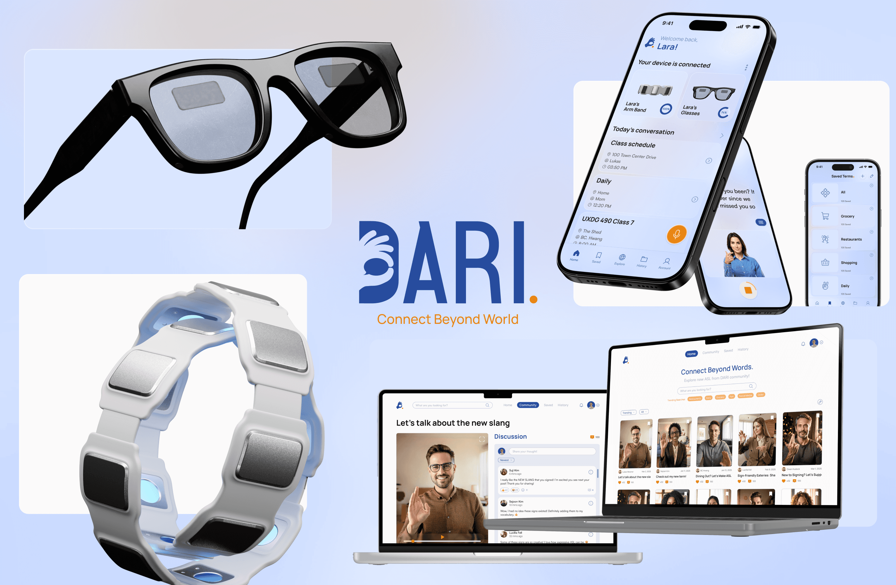 Bridging the communication gap between Deaf and hearing communities through AI-powered AR glasses (Sari) and an armband (Woori), making casual conversations more engaging.