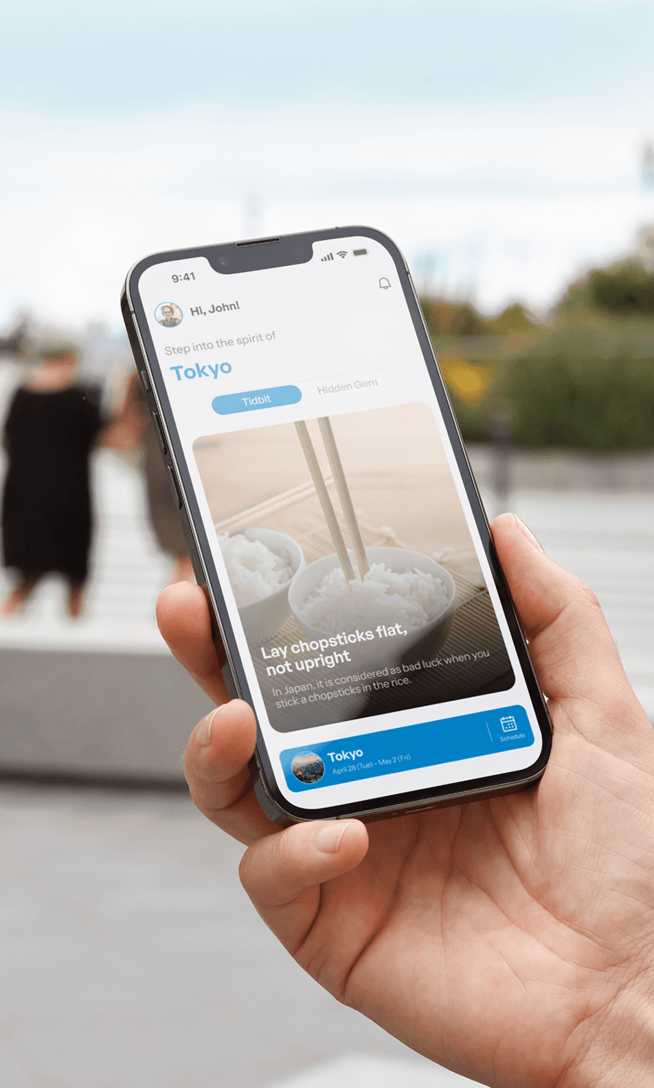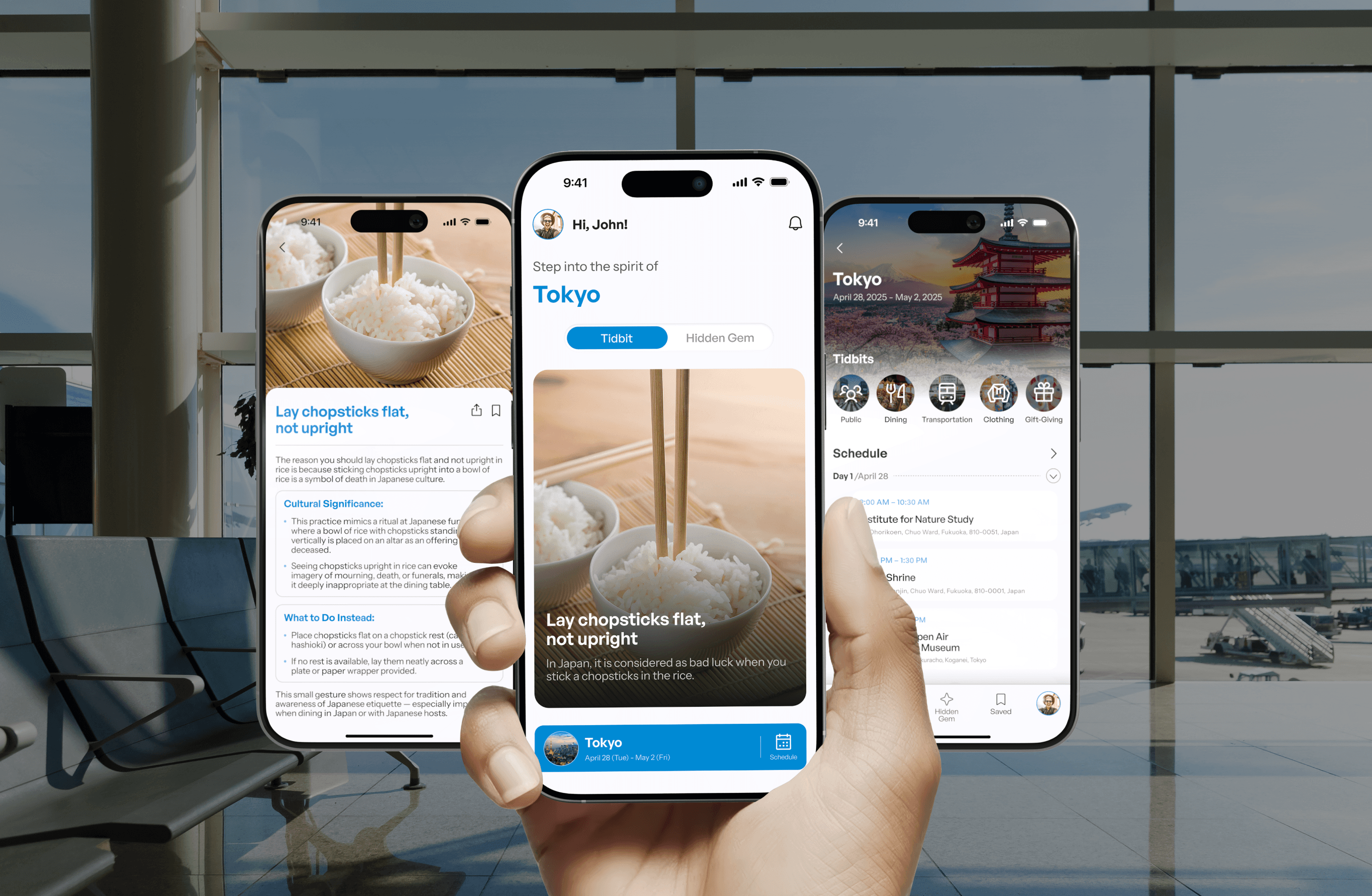 A cultural awareness travel app that helps users avoid common cultural mistakes and discover hidden local gems, all while planning trips with an intuitive, integrated schedule.